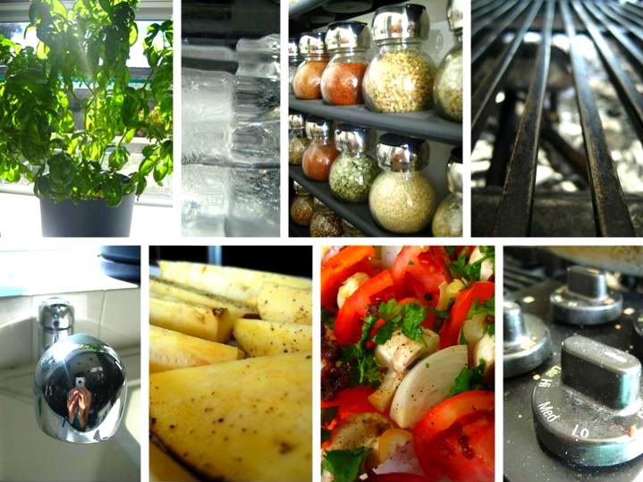 Grilled vegetables and mushrooms with korean barbeque sauce, lemon juice and cilantro and roasted sweet potatos . . . yum!